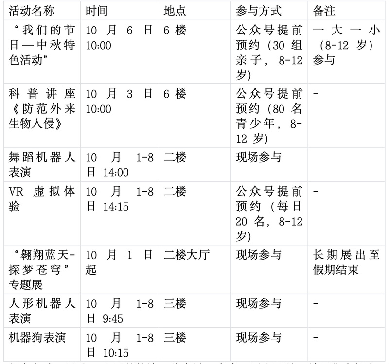 活动提示:国庆期间适合带娃日常参观科普展项,无需提前报名,直接前往即可。