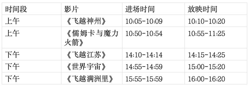 超高清8K球幕电影:《太阳系的奇妙之旅》裸眼3D全景放映,沉浸式探索宇宙;另有《太空飞行》《恐龙星球》等秋暮电影滚动播放。