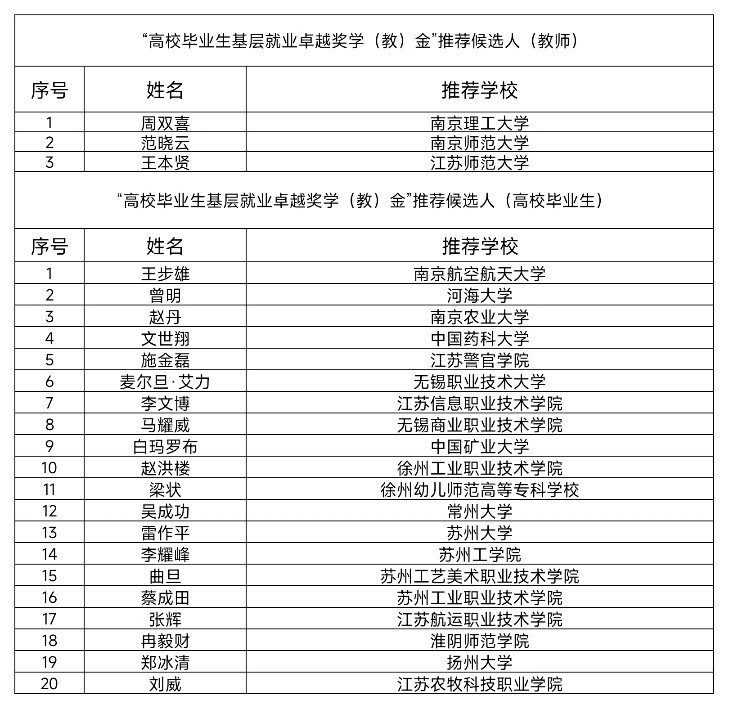 原题:江苏这些人,拟获高校毕业生基层就业卓越奖学(教)金