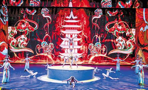 10月2日,《江湖·秀》在吴桥杂技大世界江湖大剧院上演。 本报记者 李东宇摄