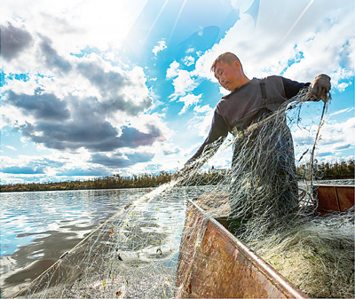 在黑龙江双鸭山饶河县四排赫哲族乡,当地渔民在乌苏里江上捕鱼。 |