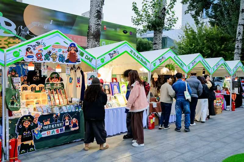 音乐生活节精心设置六大版块,构建多层次文化消费场景。30余组乐队与音乐人登场CBD露天舞台,以开放式演出打破传统边界,涵盖摇滚、蓝调、民谣、电子等多类型;每周末50余个市集摊位将演出与文创、餐饮串联,从黑胶唱片到精品咖啡,构建“演出+市集+社交”的烟火气消费场景。