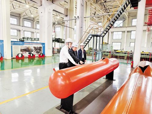 9月16日,兴业银行沧州分行相关负责人(左一)到河北沧海核装备科技股份有限公司开展业务调研。王雨萌摄