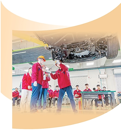 山东水利技师学院实训中心,学生正进行整车维修和保养操作。 |