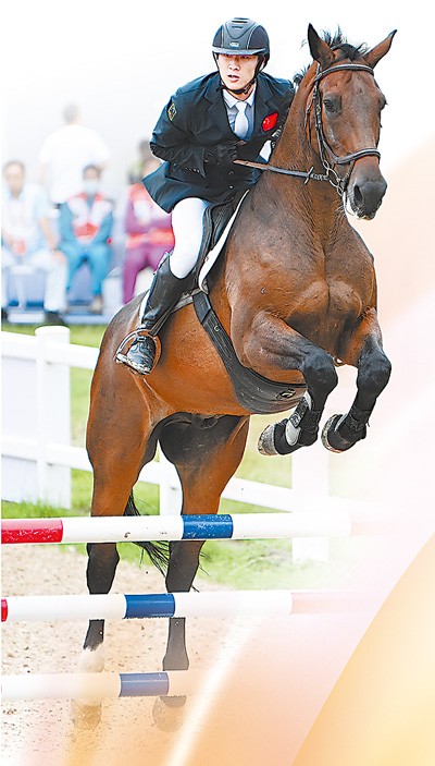 9月21日,湖北队选手陈柏良在第十五届全国运动会现代五项马术比赛中。 |