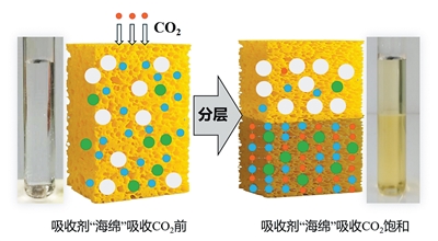 两相型二氧化碳吸收剂工作原理示意图。 |