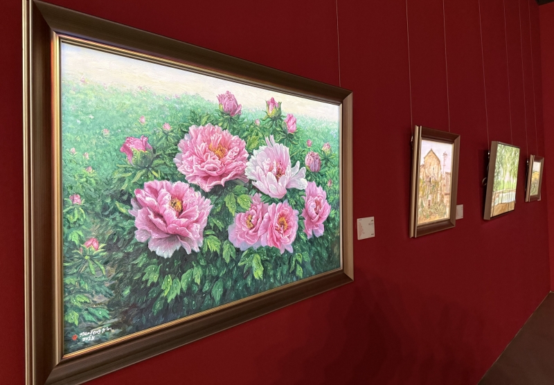 在众多佳作中,国画作品《和平之春》以细腻的笔触描绘了花朵盛放的景象,寓意和谐共生、春意盎然;油画作品《国色天香》以浓郁的色彩与饱满的构图展现东方花韵的雍容华贵。雕塑作品《山川不会忘记——北京市优秀共产党员尹春燕、蔡永章同志》以深沉的艺术语言,纪念两位英雄党员的感人事迹,传递出“为时代立碑,为人民塑像”的创作理念,彰显艺术在铭记历史、讴歌英雄中的独特力量。每一件作品都充分体现出朝阳区艺术家们扎根生活、讴歌时代的艺术追求与社会担当。