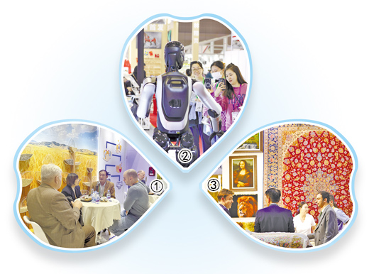 图①:俄罗斯农产品贸易企业参展方与采购商交流洽谈。 |