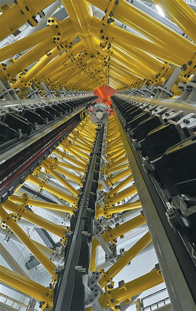 搭载电磁弹射微重力实验装置的塔楼,外塔高度约44米,塔内钢体高约40米,钢体内三角结构的导轨往上延伸,两列红色直线电机清晰可见,中间正是装载实验载荷的实验舱。“装置内直线电机提供电磁驱动力,将实验舱垂直弹射出去,在自由上升和降落过程中各有2秒的微重力时间,有效微重力时间可以达到4秒。此外,该装置也可模拟月球、火星等低重力环境。”王喆说,就这样,太空中的重力环境被“搬”到地球。