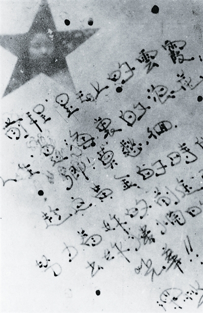 我们在血海中新生/我们在血海中迈进/今天/胜利正展现在我们的眼前/我们要准备着更大的流血/去争取前途的光明