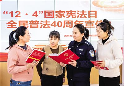12月4日,呼和浩特市玉泉区公安分局兴隆巷派出所民警为社区居民讲解宪法知识。记者 王磊 摄