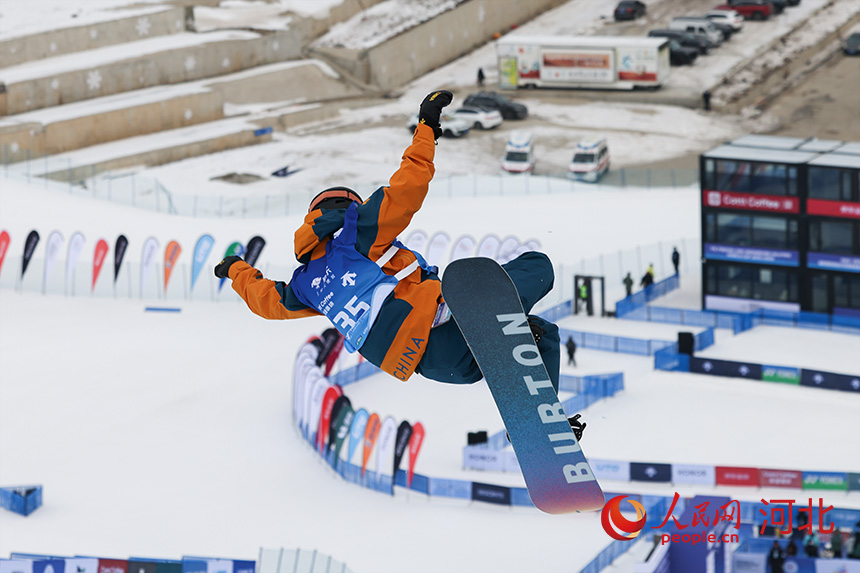 12月10日,中国选手李卓霖在单板滑雪U型场地世界杯资格赛中。人民网记者 李兆民摄