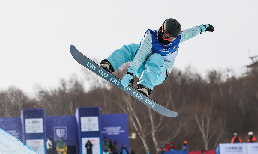 12月10日,中国选手蔡雪桐单板滑雪U型场地世界杯资格赛中。耿辉摄
