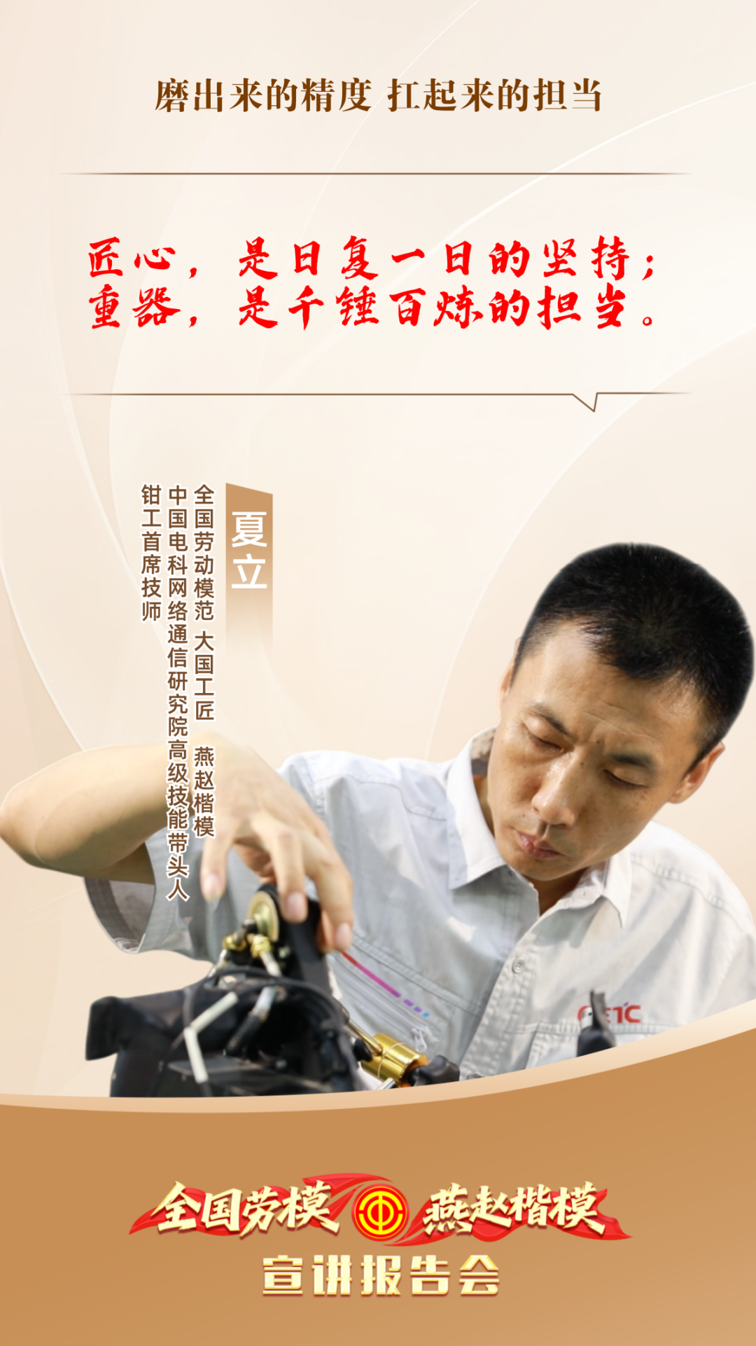从业30多年来,夏立亲手装配的天线,亮过“天眼”,指过“北斗”,送过“神舟”,护过“战舰”。他用一次次极致磨砺,不断提升着“中国精度”,先后荣获大国工匠年度人物、全国劳动模范、燕赵楷模等多项荣誉称号。