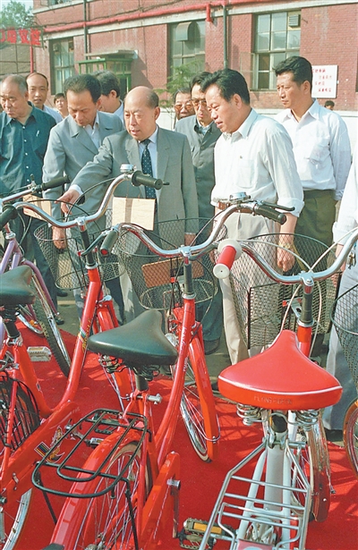 1990年6月3日,王丙乾同志在天津自行车厂考察。 |