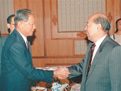 1994年5月10日,王丙乾同志在北京钓鱼台国宾馆会见由主席巴攀·杜巴德米率领的泰国上议院军委会代表团。 |