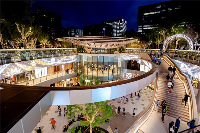 据了解,作为北京四环内最大的“文化、生态和艺术高度互融”的智慧商业空间更新项目,中关村大融城通过下沉广场、地面街区、屋顶公园的垂直串联,形成多高程、多点位的人流集散。打造光庭渗透体系,布局下沉广场及采光天窗,通过“自然光庭+天光渗透”使地下空间获得优质自然采光。
