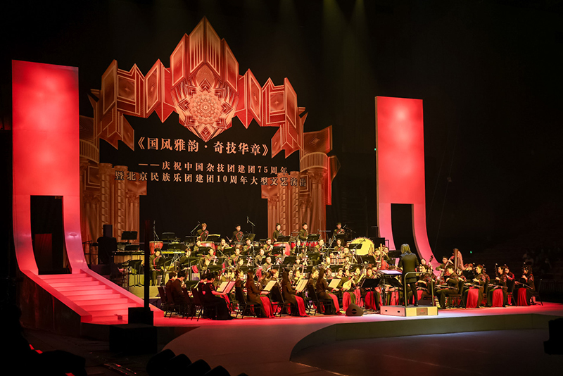 人民网北京12月16日电 (记者尹星云)日前,《国风雅韵·奇技华章》中国杂技团建团75周年暨北京民族乐团成立10周年大型文艺演出在首钢冰球馆上演。本次演出由北京演艺集团主办。