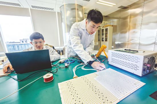 南宁初芯集成电路设计有限公司的实验室里,工程师正在进行背光板调试。 记者叶子榕 摄