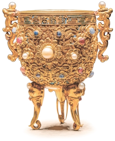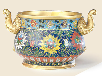 掐丝珐琅缠枝莲纹象耳炉。 |