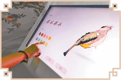 “故宫博物院沉浸式数字体验展”上,观众在创作纹样。 |
