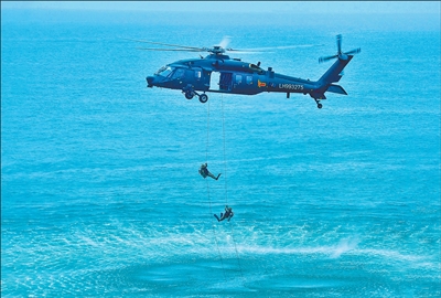 10月10日,东部战区陆军某旅联合友邻单位组织空地协同训练,检验多机型编队突击和空地协同能力。本次训练包括水下渗透、武装运输、机降作战等多个课目,积累了空地协同训练数据,为提升立体作战能力打下基础。