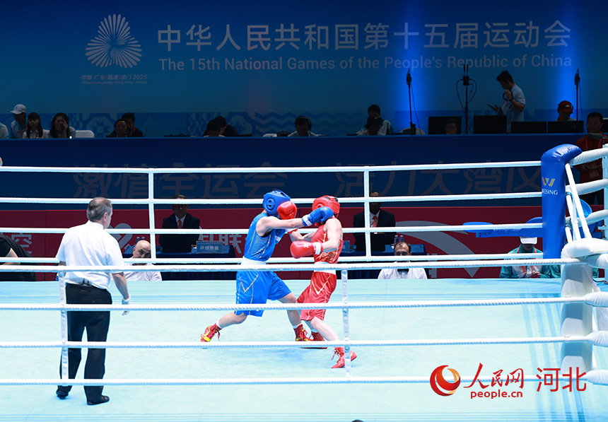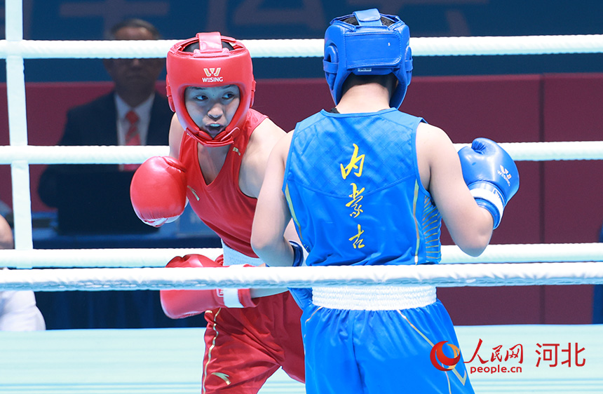 常园(左)在第十五届全运会女子拳击54公斤级决赛现场。人民网记者 李兆民摄