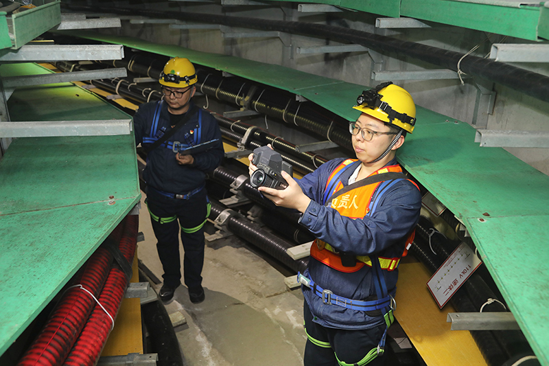国网北京电缆公司运维人员正在巡检地下电缆设备,全力保障城市冬季供电安全稳定。赵旌朝摄