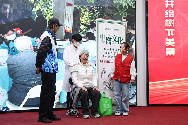 大会还特别设置了“树下好人”故事分享环节。三位来自不同领域的代表讲述了他们的服务历程:社区食堂代表介绍了为百岁老人、快递小哥等群体提供的爱心餐与公益服务;恒丰银行赵莹分享了参与助老慰问、环境清洁等志愿活动的暖心经历;翠屏北里社区志愿者曹翠华近十年如一日投身志愿服务,一句“只要大家有需要,我就不会停下脚步”,道出了无数志愿者默默奉献、共建家园的初心。