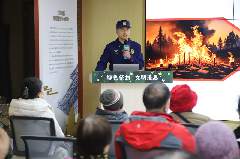 在消防安全宣讲环节中,金融街消防站副站长滕庆凯结合实际案例,讲解祭扫过程中的防火安全知识。以真实案例为教材的短视频、直观的模拟实验数据,帮助在场观众强化意识提升安全消防素养。当天活动场外还搭建了消防逃生演习帐篷,居民在消防官兵演示后实操掌握在光线暗的狭窄通道应急疏散要领。