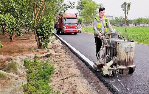 河北高速集团京沪分公司为东光县任庄村新建便民道路施划标线。