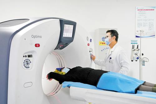 近日,在巨鹿县西郭城镇卫生院,医生用先进的CT扫描仪为患者做腰椎椎体平扫。 胡良川摄