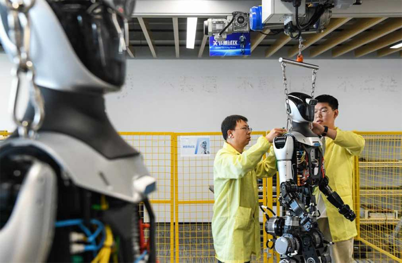 人形机器人(上海)有限公司工作人员在进行机器人关节测试。陶磊摄