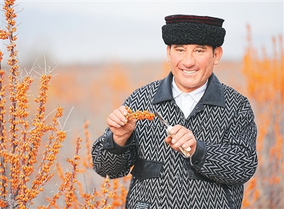 我是新疆塔什库尔干塔吉克自治县班迪尔乡的塔吉克族村民。今年,我家10亩沙棘林迎来好收成,5吨果子卖出2万元,比去年还多赚5000元。